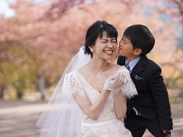 もともとは二人でフォトウェディングだけをして、コロナが落ち着いてから何年後でもいいので家族を呼んで式を挙げようと思い、小野写真館さんに相談に行きました。そうしたところ、今回のプランをご提案いただき、私たちにはこれしかない、ぴったりだと思いました。